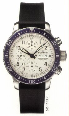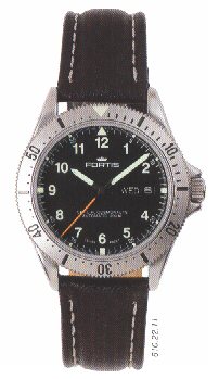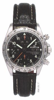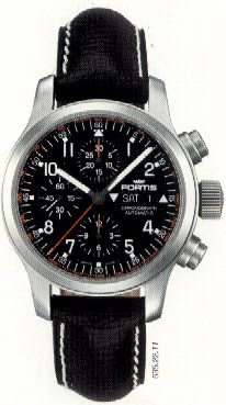 | B-42 Flieger Day/date. This was a new model range for 2005 based on the existing B-42 but without the chronograph features. Shown here (right) is the basic model with white dial. Stainless steel case (brushed). Sapphire crystal anti-reflective both sides. Glass back. Double gasket water seal. Water resistant to 200m. Luminous. D= 42mm. H= 12.1mm. Base movement: ETA 2836-2.
