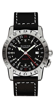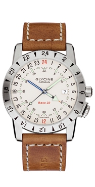 Airman 18 - New. Automatic with 3 time zones. Stainless steel case, satin/polished. Luminous. Date. Sapphire crystal. Sapphire rear window. Water resistant to 200m. D= 39mm. H= 10.25mm. Base movement: GL293. 3918.19.LB9B shown but other executions available including purist's version (all 24 hour but 2 zones only). £1460 with strap